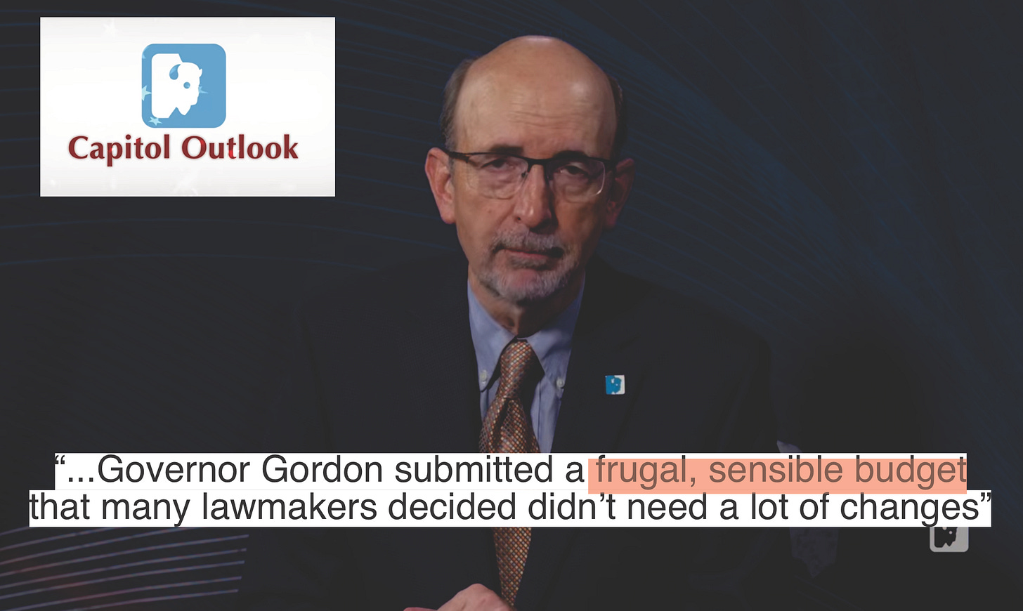 Nearly drooling over the Chief Executive, Wyoming PBS’s Steve Peck characterized Governor Gordon’s $11 billion budget as “frugal” and “sensible.”